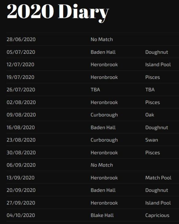 Please be aware that, there has been a number of changes to the 2020 Match Diary